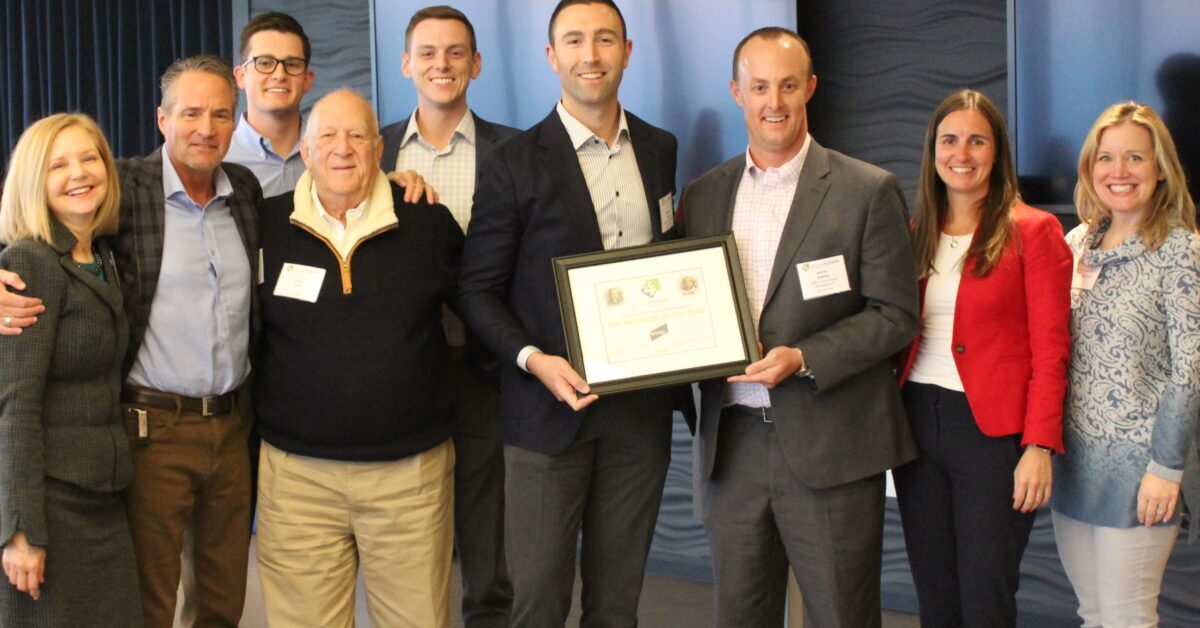 Max Mann and other Baird associates accept the Difference Maker award from SecureFutures founder Lloyd Levin and Board chair Nate Stading