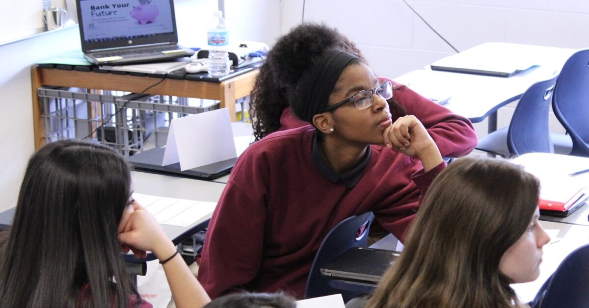 In a different classroom down the hall, a pocket of students entered Eric Arvold’s Money Sense lesson already chatting about scholarships, grants and loans for college.