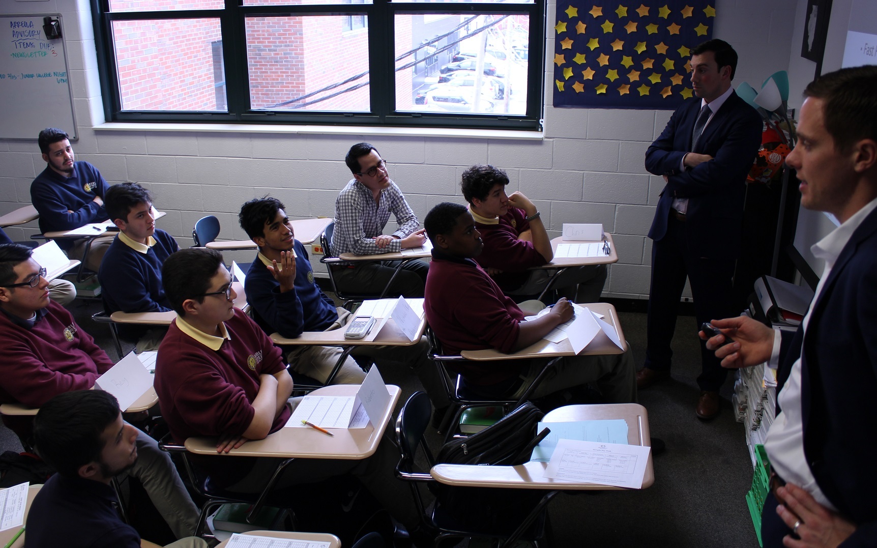 For Money Sense volunteers Tyler Neenan and Alex Schmiesing (at left, respectively, with Nick speaking from his desk), this was a teachable moment. Financial education is more than just outlining the importance of savings and budgets. It’s about putting good behaviors into practice – and maybe planning a little bit better.