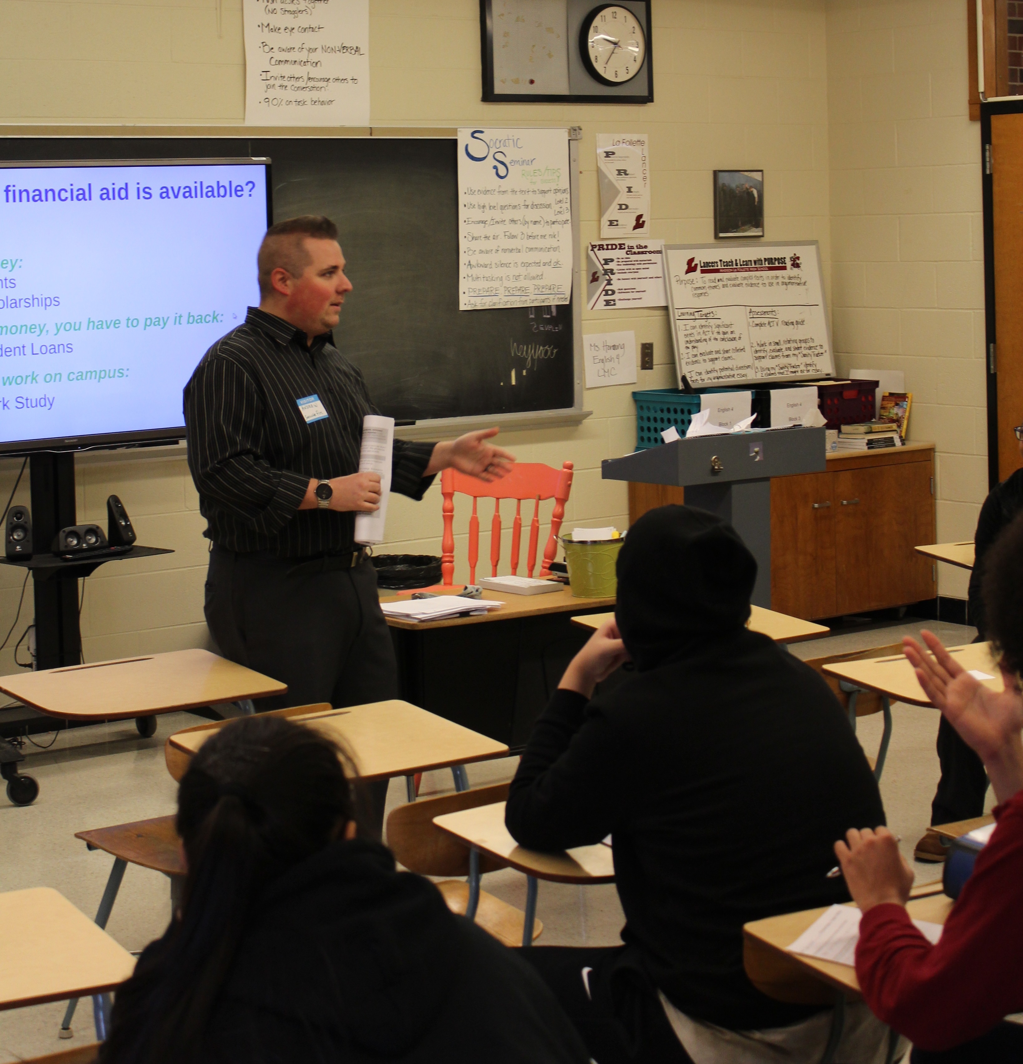 Personal finance conversations like these reverberated through the splintered wings of the Madison high school during a December weekday morning as hundreds of juniors experienced a second section of our Money Sense program. For the second-straight year, La Follette brought nearly their entire junior class our programs, taught by approximately 17 volunteers, from local leaders at Park Bank, UBS, Associated, CUNA and Prism Wealth Management. The comprehensive partnership is part of a wider push to Madison high school and its district to provide financial literacy to students before graduation.