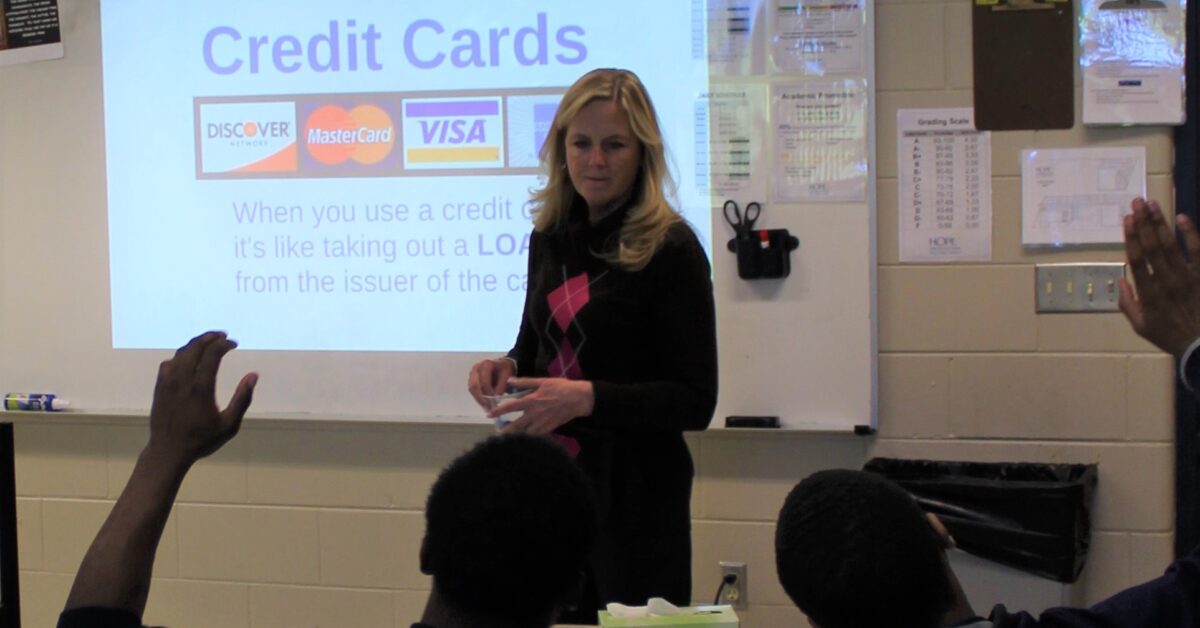 Five years ago, Anne Potkay probably wouldn’t have imagined herself standing in front of a group of high school students teaching financial literacy.