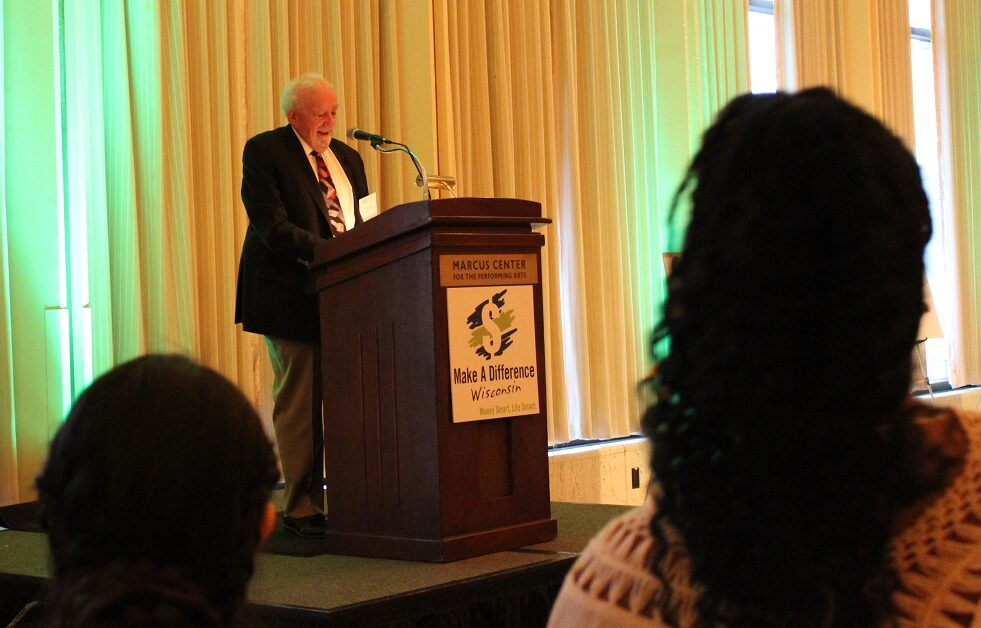 “This was an ideal fit for me. I was able to take care of a portion of my minimum distribution for the year. At the same time, I steered money toward Make A Difference – Wisconsin, a cause and nonprofit that I care about deeply,” said Schnoll, pictured at left in August as he spoke to supporters and Money Coach students Anayeli and Nia.