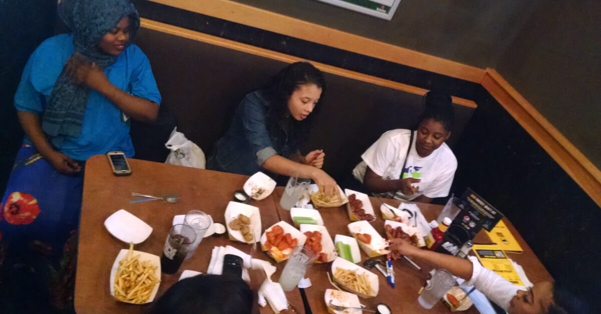 I am excited to report that we now have a longitudinal study of young adults who completed our Money Coach program. Money Coach was created for mentoring, engagement and empowering those teens deemed “at-risk” of not graduating. The months’ long student outreach was led by our dynamic program manager, Stephaine Crosley (pictured during a summer lunch with alum), and the results she recorded are phenomenal.